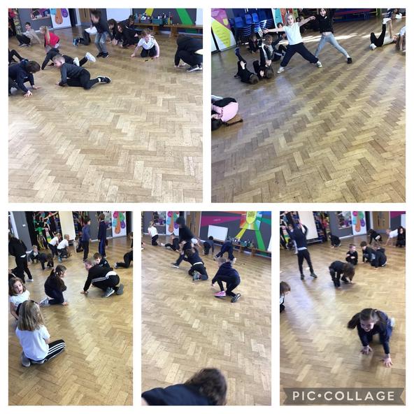 Here is a Year 2 dance lesson completing a range of high and low movements and ending in a short motif that they perform to one another.