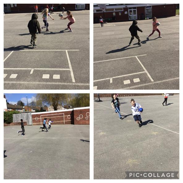 Year 5 have been learning how to pass and dribble in their Tag Rugby unit. They have also been learning the importance of attacking and defending in game situations.