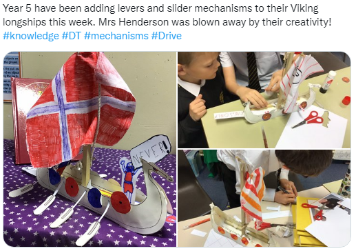 In Reception, DT is experimented with and taught as part of ‘Continuous Provision’ with some adult-led learning and some child-initiated learning with sustained shared thinking. Across the rest of the school, DT is taught as part of our Curriculum units alongside Art, History and Geography. This is a deliberate decision in response to the Stakeholder views as well as the high priority we place on deepening knowledge. In order for children to be excited and inspired, it is important they are fully immersed in the learning and can make links to other knowledge acquired – within DT and across the curriculum, rather than seeing learning in isolation. Within each year group, the timetabling of DT is flexible, depending on the topic learning journey. However, the timings average to approximately 1 hour per week. This ensures breadth and depth of knowledge and secure knowledge retention and skills progression.