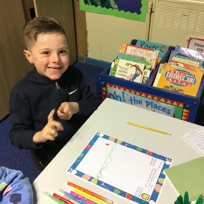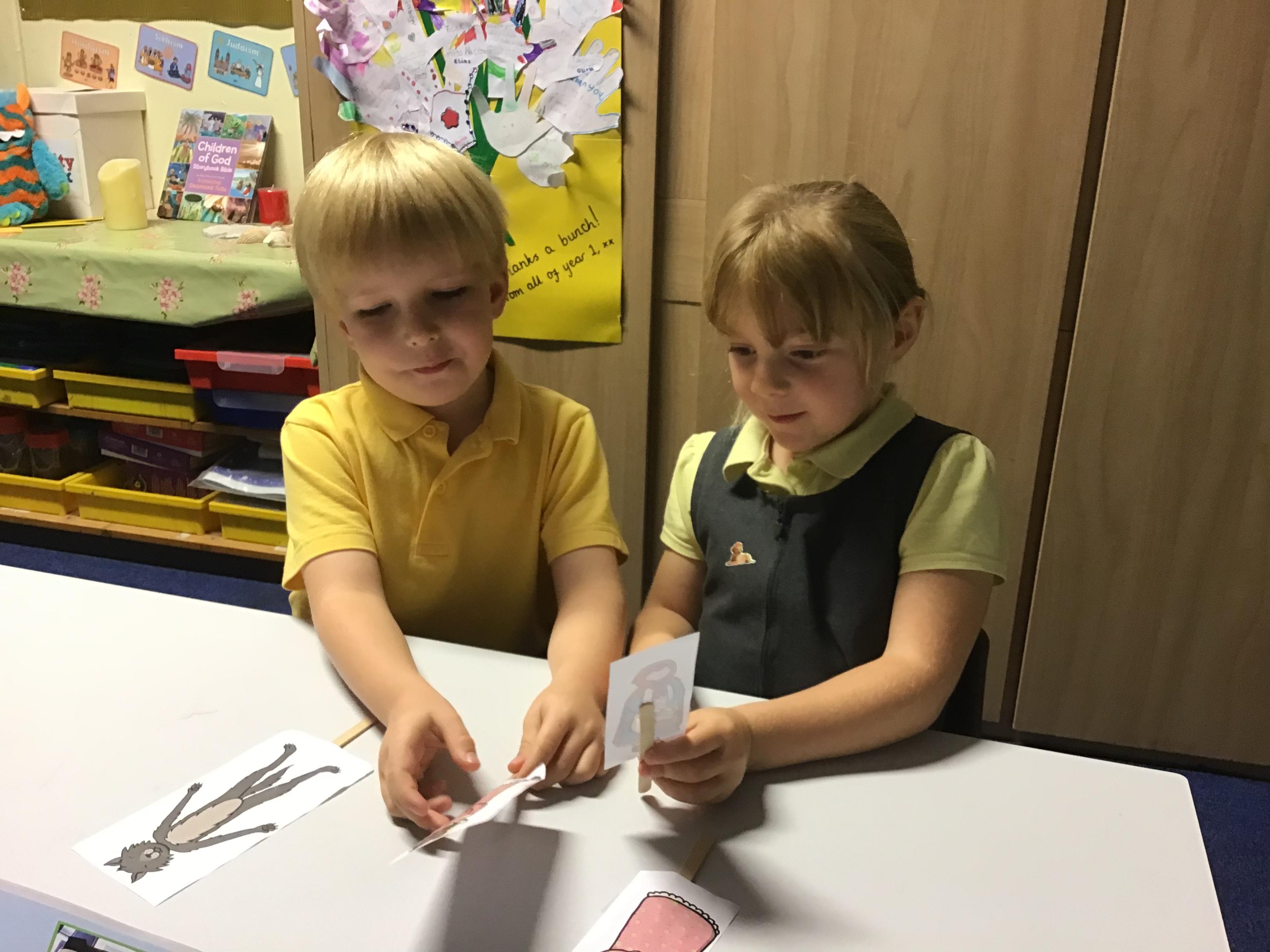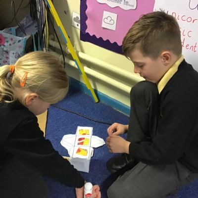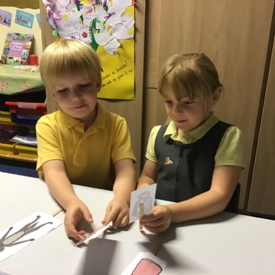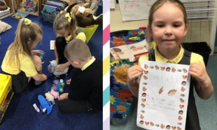 Our English learning has been based around Little Red Riding Hood where we made our own wanted posters, interviewed the wolf and re-told the story using a story map. We then completed a non-fiction unit on fact files where we wrote lots of facts about our school. In maths our focus has been on Number and Place Value Within 10. Children have learnt to count forwards and backwards, find one more and one less, compare groups by matching and started to use the language of fewer, more and same. In science children have really enjoyed their physics work on seasonal changes in Autumn and learning about the human body in biology. In RE we have learnt about the creation story, and how Christians say thank you to God.